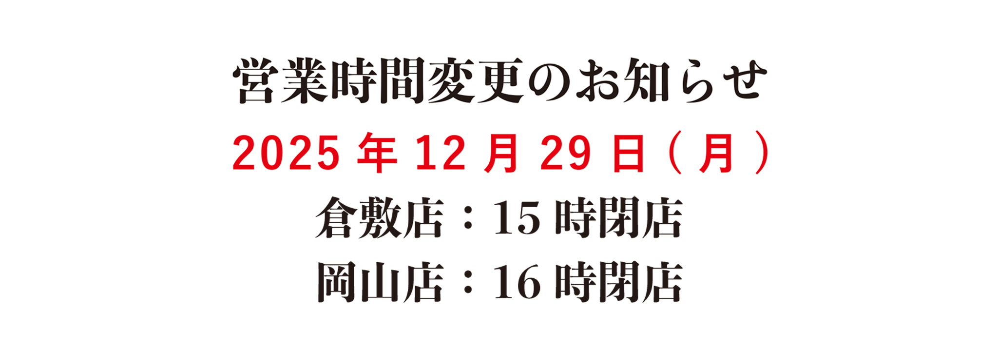 岡山県岡山市南区新保 1604-1営業時間 : 11:00~19:00 定休日 : 毎週火曜日 ※祝日の場合は営業