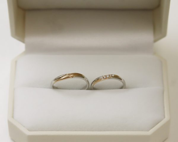 「シンプルだけど少しデザイン性がほしい」という方に選ばれた、バランスの良い結婚指輪です。