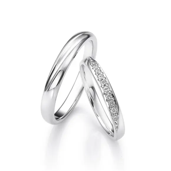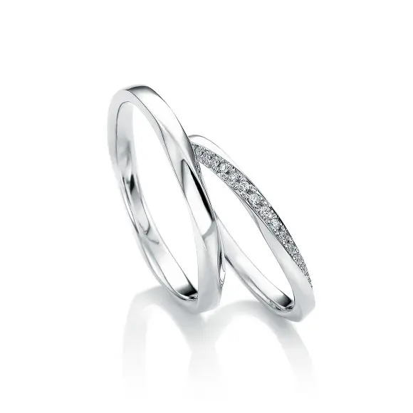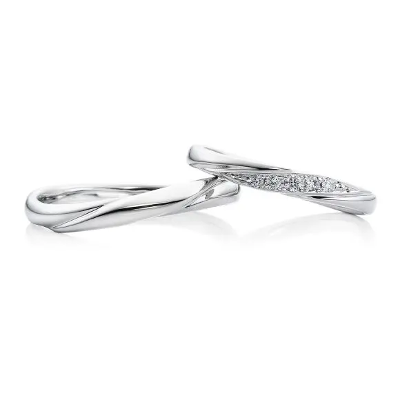 お二人のこれからを見守ってくれるように指をやさしく包み込むカーブがダイヤを際立たせ輝きを放ってくれます。
