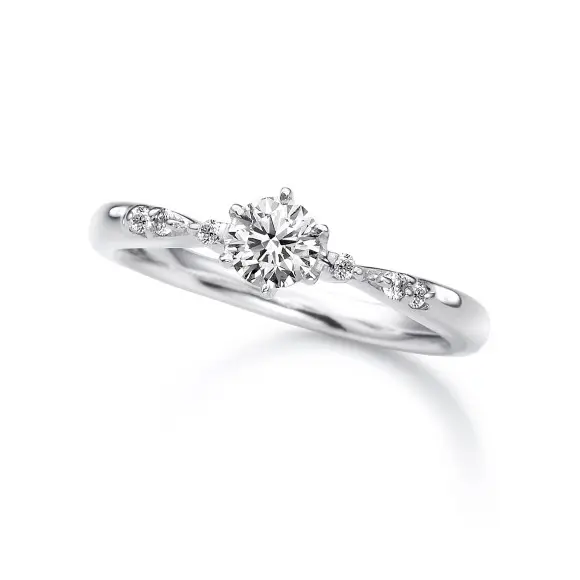 花びらのように留まるダイヤの輝きが指元に気品をもたらしてくれるだけでなく、上品にダイヤを楽しませてくれるリングです。