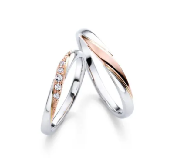 異なる素材を組み合わせたコンビデザインが印象的な結婚指輪です。