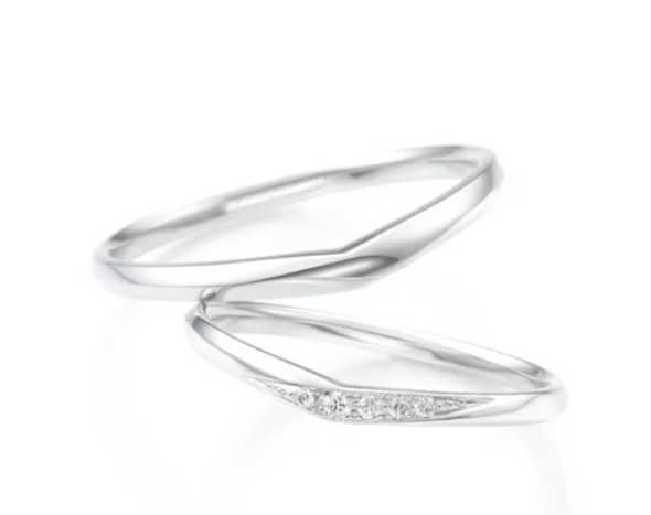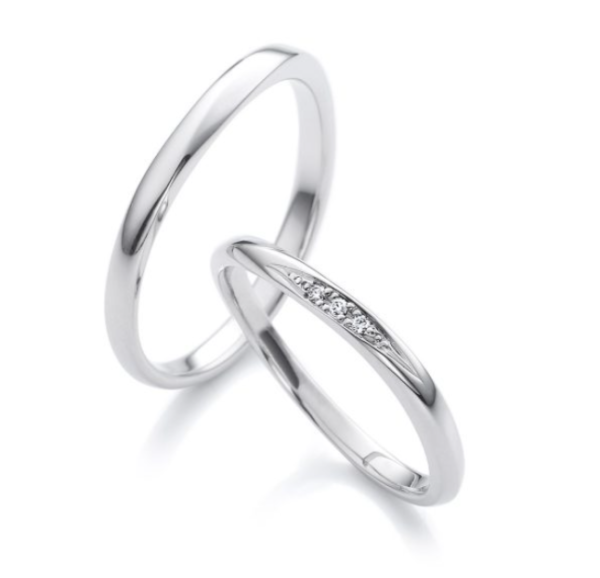 無駄のないフォルムが印象的な、すっきりとしたデザインの結婚指輪です。